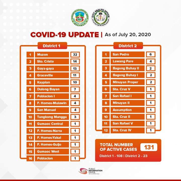 Ayon sa SJDM Public Information Office, nagmula ang mga bagong kaso sa sakit sa mga sumusunod na lugar: