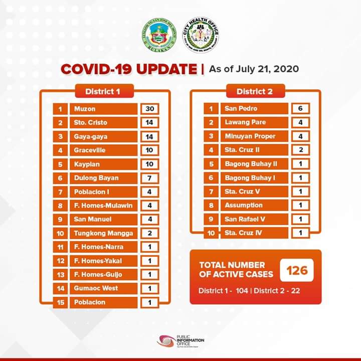 Batay sa inilabas na updates ng SJDM Public Information Office, nanggaling ang mga bagong kaso ng COVID-19 sa mga sumusunod na barangay: